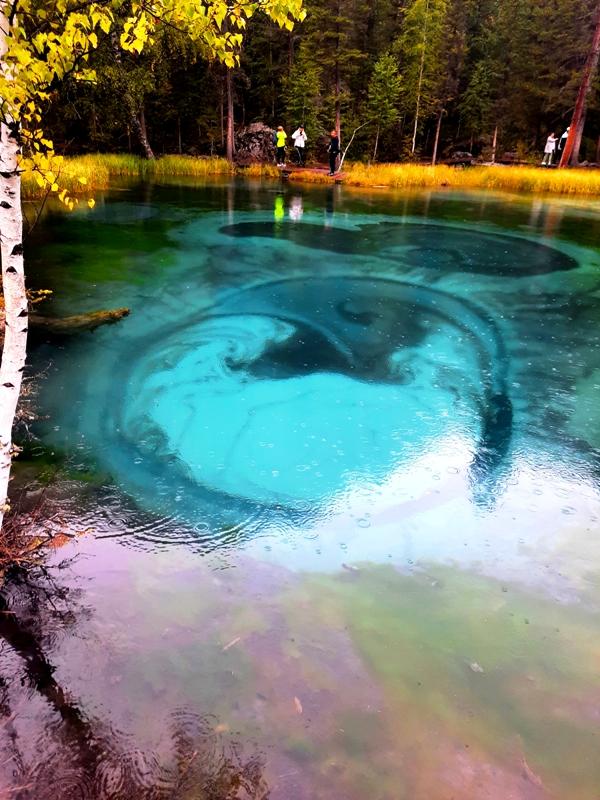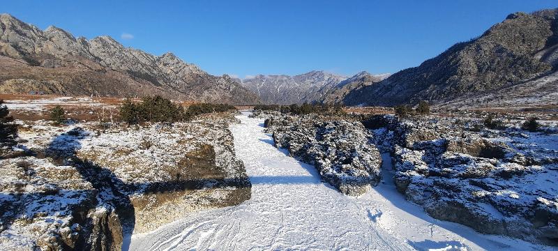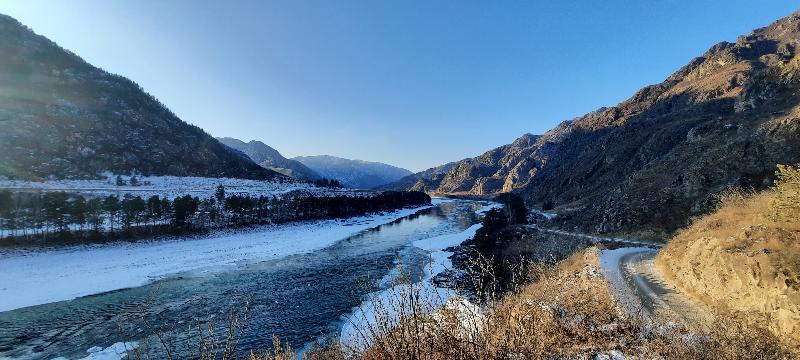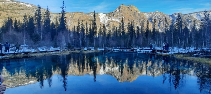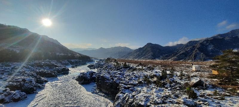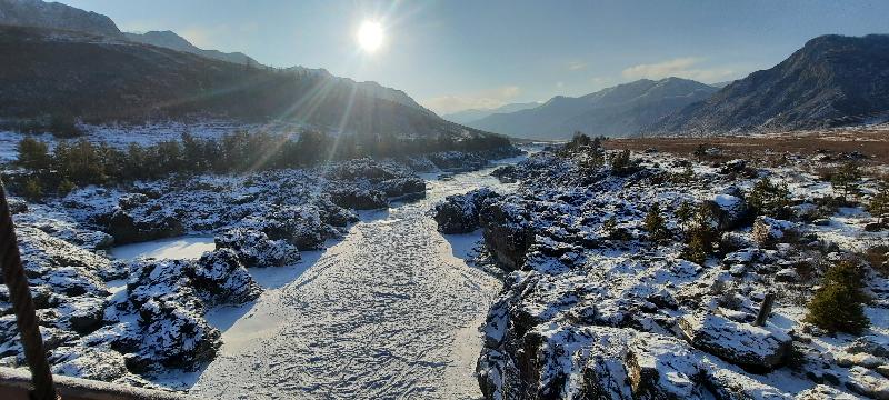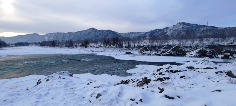 Иней искрится на солнце, с воды поднимается пар. Все эти краски в сочетании с красотами Горного Алтая делают эти места по-настоящему сказочными.